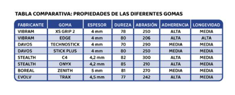 Por último, en Climber Up hemos colaborado con un laboratorio independiente para analizar los diferentes tipos de goma que aunque alguna no se encuentran ella en el mercado nos dan una idea de las diferencias entre cada fabricante: